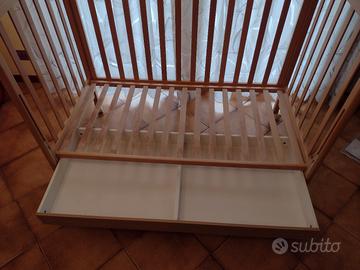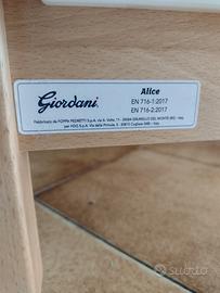 Lettino Giordani, modello Alice, in legno massello color frassino naturale, con spondina rimovibile, ruote, cassetto portaoggetti inferiore, perfettamente funzionante. Compreso nel prezzo vendo il suo materasso. Disponibile anche riduttore marca Giordani. Eventuale spedizione su richiesta.