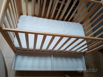 Vendo lettino per bambini in legno massello, robusto e sicuro. Completo di materasso e sponda regolabile. Usato per i miei 2 figli, qualche segno di usura dove c'era attaccato il carillon. Ideale per neonati e bambini fino a 3 anni.