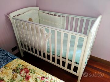 Vendo lettino marchio Cuoricini modello Giulia come da foto. Ottime condizioni, usato poco, colore bianco. La rete si può posizionare in due modi, più alta per i neonati, in modo da accedere più facilmente. Ruote e cassetto inferiore mai installati, ancora nella confezione originale. Disponibili istruzioni e scatola originale (già smontato e impacchettato). Contattatemi via messaggio per misure e altre info. Preferibile consegna a mano.