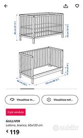 Vendo lettino Gulliver Ikea con materasso, usato poco in buone condizioni ma con segni su una delle due parti lunghe per via dell’aggancio della giostrina (come da foto).