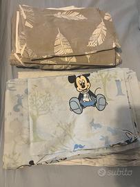Due set con copri materasso, sacco piumino e federa.