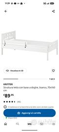 Vendo lettino Ikea modello Kritter in buone condizioni, completo di spondina come in foto (si può mettere a dx o sx), rete a doghe e materasso, già montato. Come nuovo salvo qualche piccolo graffio nella struttura. Ritiro a carico dell' acquirente. Prezzo 30€, per info scrivetemi in privato 😊