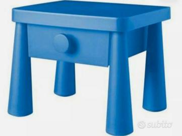 Lettino IKEA Mammut con comodino. Colore blu, con possibilità di materasso.