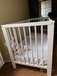 Lettino Ikea con sbarre, un lato dei quali removibile. Tenuto molto bene, qualche piccolissima sbreccatura. Per chi vuole regalo anche il materasso. Possibilità di averne anche due!!!!