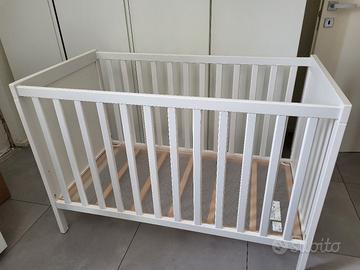 lettino bianco ikea 60×120 (scheda tecnica visibile sul sito) qualche piccolo segno sul legno ma per il resto ottimo stato. possibilità di alzare la rete per aver il materasso più alto ( Vedi foto con foro) . vendo assieme materasso Prenatal del valore di 60 euro anti acaro, sfoderabile e lavabile in lavatrice. regalo 3 sacchi nanna e 6 lenzuola con angoli . vendo montato da ritirare presso la mia abitazione o eventualmente c'è la possibilità di consegnarlo con furgoncino alla Vs abitazione nei paesi limitrofi. contattami per altre info