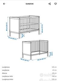 Vendesi lettino ikea per cessato uso. Il lettino è completo, minimi graffi dovuti all'uso, che non compromettono il suo utilizzo. Letto robusto e comodo , con 2 altezze della base dove appoggia il materasso. Spedizione da concordare. Primo contatto tramite subito.it