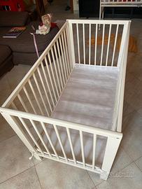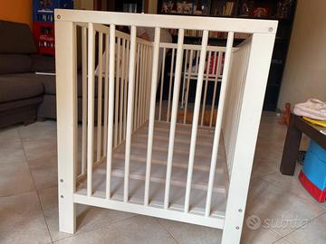 Vendo Lettino di legno bianco Ikea in ottimo stato con materasso come nuovo usato per seconda casa in più in omaggio regalo lenzuolino, un piumino e un cuscino