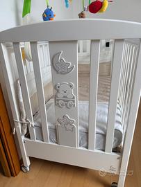 Vendo lettino in legno di faggio verniciato bianco, completo di materasso, in condizioni eccellenti.