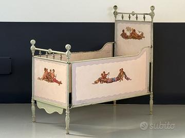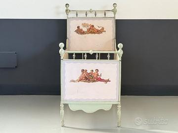 Lettino in ferro decorato a mano antiquariato 1910