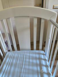 vendo lettino in legno bianco con cassetto compreso materasso e accessori