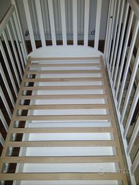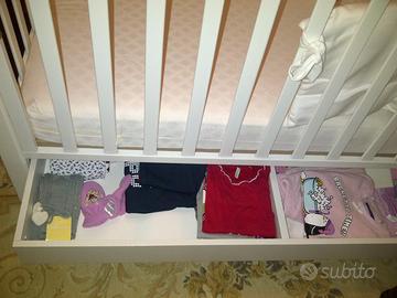 Vendo lettino in legno bianco, marca PICCI serie Diamante, made in Italy, rete di doghe in legno, cassettone sotto la rete capiente per ordinare gli abitini del vostro bimbo. Spondina laterale ribassabile. Manifattura italiana, prodotto di alta qualità e molto raffinato. In perfette condizioni, praticamente come nuovo. Acquistato al prezzo di 490,00 euro. Disponibile anche paracolpi e piumino coordinati, sempre della serie PICCI, in tessuto bianco in raso di cotone con orsetto in brillantini, bellissimi.