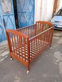 Vendo lettino per bambino in legno massello colore noce, solido e ben tenuto.