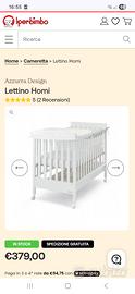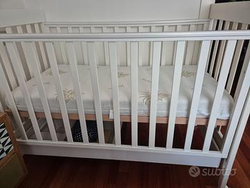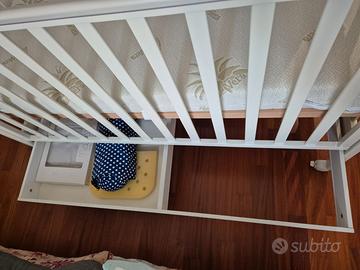 Lettino con base materasso regolabile in altezza su 2 posizioni.