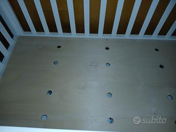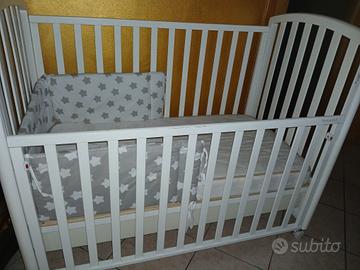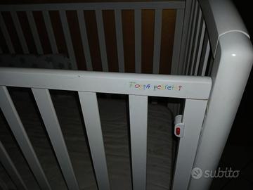 lettino in legno foppapedretti con ruote,spondina regolabile,cassettone e materasso in ottime condizioni.