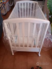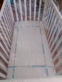 Lettino Foppapedretti in legno con materasso Disponobile a parte paracolpi lenzuola e piumino