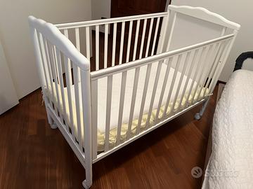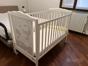 Lettino per neonati in legno della ditta Pali completo di materassino ortopedico antiacaro.
