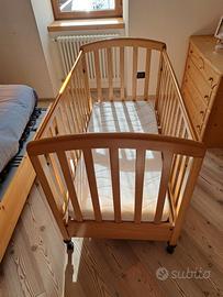 Vendo lettino in legno per bambini compreso di materasso. Il lettino ha un cassetto sotto ed è in ottime condizioni.