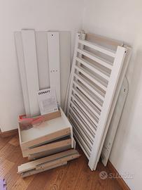 Lettino per bebè a sbarre marca IKEA con tre cassetti per il ripostiglio, in ottime condizioni. Una delle sponde laterali può essere rimossa e sostituita con un parapetto, per dare più libertà al bambino che cresce. Il letto è da ritirare smontato, ma si rimonta molto facilmente con l’aiuto del manuale fornito.