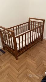 In perfette condizioni, lettino in legno scuro, compreso di materasso, le spondine si possono abbassare. Misure 70cm x 132cm. Ritiro presso Salzano o Spinea.