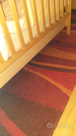 Lettino in legno colore legno naturale con cassetto sotto porta oggetti , compreso di materasso e copri materasso con tela cerata incorporata. Come nuovo . Prodotto italiano lungo 130cm e largo 70 cm, marca AZZURRA DESIGN