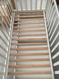 Parti imbustate singolarmente. Il lettino è in buone condizioni generali e strutturalmente perfetto. Presenta alcuni piccoli segni di normale usura sulla vernice delle sponde (visibili nelle foto di dettaglio), facilmente ritoccabili o copribili con un paracolpi.
