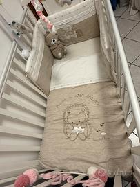 Lettino in legno di Faggio verniciato bianco N.2 spondine mobili Rete a doghe Completo di materasso Nuovo perche’ la bimba non ci ha mai dormito
