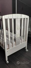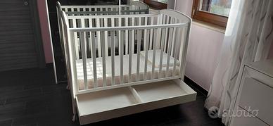 Lettino bambini usato ma ottime condizioni, no difetti, bianco con fascia decorativa tortora e decorazioni, misure, 130x70x103. Con ruote piroettanti con freno, cassetto contenitore. Includo anche materasso in ottime condizioni e paracolpi rosa e bianco. Ritiro in zona, oppure in caso di spedizione le spese vanno calcolate a parte.