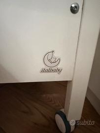 Lettino Italbaby con struttura in faggio, vernici atossiche a base acqua e la guaina superiore antimorso. La rete a doghe e il cassetto del lettino hanno un doppio scompartimento. Il prodotto ha 4 ruote piroettanti gommate antigraffio di cui due con freno. Le misure del lettino Italbaby My Teddy sono 130x70x103 cm. Materasso incluso.
