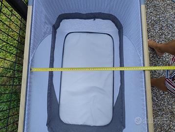 In ottime condizioni! Vantaggi principali 4 in 1: lettino per neonato, lettino da viaggio, culla e box Pieghevole in poche mosse Materassino regolabile su due 2 livelli di altezza Struttura leggera - ideale per il viaggio Materassino incluso nel kit Ideale per riposare, giocare, viaggiare e provvisto di dondolio SOFI è molto di più che un lettino! È un lettino per neonato e un lettino da viaggio, inoltre, è una culla e un box, due in uno. È leggero e si chiude in poche mosse. Grazie alla borsa e al materassino inclusi nel kit, puoi portarlo facilmente in viaggio. SOFI accompagna la crescita del bambino - quando il bimbo sarà troppo grande per un classico lettino, basterà abbassare il fondo e trasformarlo in un pratico box. L'ingresso laterale aggiuntivo consente al bambino di entrare e uscire da solo. Regolando il materassino sul livello più alto, si crea un pratico vano in cui riporre gli accessori e i giocattoli. Il materassino è incluso nel kit.