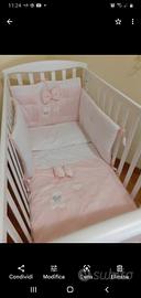 Vendo lettino foppapedretti laccato bianco con cassetto, materasso, cuscino, paracolpi e lenzuola abbinate, come da foto. È in ottimo stato, un vero affare.