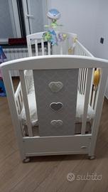 Lettino Lovely Foppapedretti pari a nuovo completo di materasso e coprimaterasso. Compresi nel prezzo anche paracolpi, piumone e copripiumone coordinati marca Italbaby serie Mon Amour. Disponibile anche la vendita solo del lettino, prezzo da concordare.