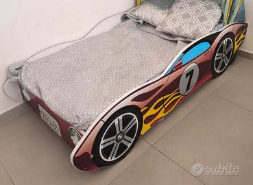 lettino per bambini a forma di macchinina ben fatto e ben tenuto usato giusto un paio di volte misure 160x75 cm completo di rete e materasso