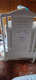 Lettino mon aumor bianco in legno con bellissimo orsetto! Sponda con più altezze e anche removibile, con ruote e freno, cassetto molto spazioso!
