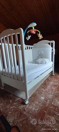 Descrizione sul sito Prenatal. Paracolpi mon aumor , copripiumino e piumino con federa del set. Materasso easy safe più coprimaterasso anti acari e traspirante in tre strati di Prenatal. Il valore totale è più di 600€ visibile sul sito Prenatal. Comprese anche lenzuola mai usate. È tutto NUOVO perché mia figlia ha sempre dormito con me. Per info e maggiori foto e foto più nitide se realmente interessati sono a disposizione, sul sito Prenatal è tutto facilmente visionabile . Possibilità di acquisti divisi .Per info sono a disposizione