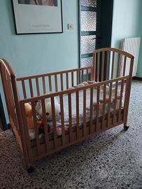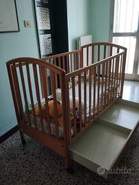 Vendo lettino con materassino in buone condizioni, con con antine sali scendi e cassettone come da foto.