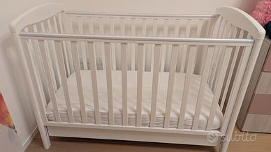 Vendo lettino con sbarre comprensivo di materasso con trattamento anti acaro. Il lettino non ha difetti, ha un lato che si abbassa a metà altezza con una semplice mossa. Regalo anche coprimaterasso e lenzuola. Prezzo leggermente trattabile. A disposizione per foto e video. Solo ritiro a mano zona Paese.