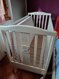 Lettino come nuovo, aimè praticamente mai usato, 130x70h100, sponda basculante, cassettone inferiore+materasso sostegno progressivo bimbostore anch'esso poco sfruttato+cuscini parabordi blu (mando foto se interessati) +10 pezzi circa fra lenzuolini e copricuscini Prezzo trattabile su trasporto e montaggio
