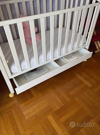 Lettimo/culla con materasso abbinato Foppapedretti in legno bianco.