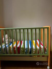 Lettino in legno marca Mibb completo di cassettone e materassino. . Usato pochissimo. Possibilità di vendita paracolpi e lenzuola, mobiletto abbinabile con fasciatoio con cassetti e vaschetta.