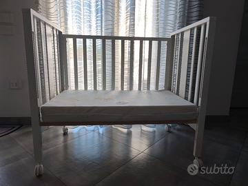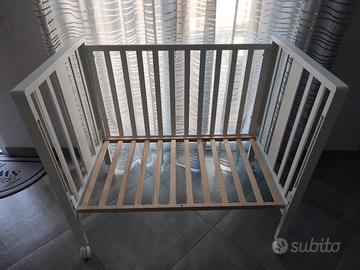 Il lettino è dotato di 4 ruote piroettanti di cui due con freno, 2 cinghie di sicurezza per l’accostamento e fissaggio al letto dei genitori.