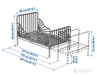 Lettino Minnen con doghe e materasso allungabile,usato poche volte solo in vacanza.