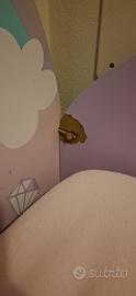 Vendo lettino Montessori per bambina in MDF, con decorazioni unicorno e arcobaleno, colore lilla.