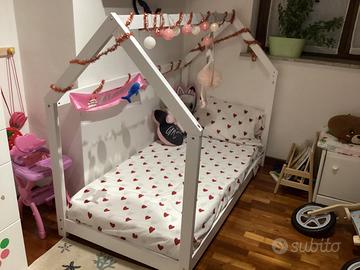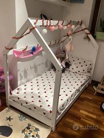 Lettino montessori, mai usato nuovo, misure 80x160 colore bianco completo di materasso nuovo, altezza cm 14 ergonomico, traspirabile, reversibile lato estate/inverno pagato € 78,00 di buona qualità e coprimaterasso una parte cotone e cerata sotto.impermeabile