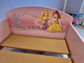 Lettino per bimba misure 140x70, adatto a bimbe tra i 2 e i 6/7 anni. Doghe resistenti e colori brillanti, le mie figlie lo hanno adorato. Segnalo solamente un difetto nel disegno dove sono presenti le 3 principesse, a fondo del letto. Viene venduto a 60€ solo il letto, se si necessita anche il materasso il prezzo è 80€. Ottimo per una seconda casa, un lettino della stessa manifattura su Amazon (escluso materasso) costa 230€ c.a.