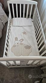 Lettino con struttura in faggio, con vernici atossiche a base acqua, spondine mobili con guaina superiore antimorso.