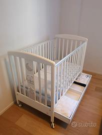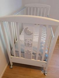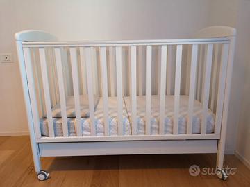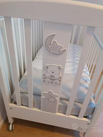 Lettino Italbaby con struttura in faggio, vernici atossiche a base acqua e la guaina superiore antimorso. La rete a doghe e il cassetto del lettino hanno un doppio scompartimento. Il prodotto ha 4 ruote piroettanti gommate antigraffio di cui due con freno. Le misure del lettino Italbaby My Teddy sono 130x70x103 cm. Materasso incluso. Disponibili eventualmente anche paracolpi e set lenzuola.