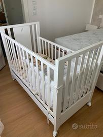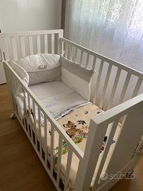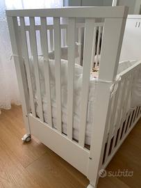 In ottime condizioni, usato pochissimo, presenta solo un piccolo segno dove c era la giostrina. Vendo con materasso senza paracolpi