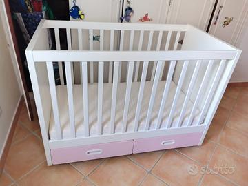 Vendo lettino neonata marca ikea misure 65x125cm altezza 90 cm compreso di rotelle e 2 cassetti color rosa ed anche materasso antisoffocamento tutto in buono stato