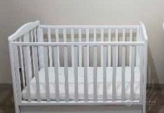 Il lettino in legno ha una sponda regolabile a due altezze, per facilitare il riordino.