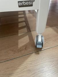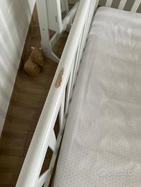 Unico difetto come in foto, lo smalto sopra alla ringhierina si è tolto perchè sopra c'era poggiato il fasciatoio ad incasso. Usato pochi mesi in quanto poi subito ha dormito nel letto piú grande.
